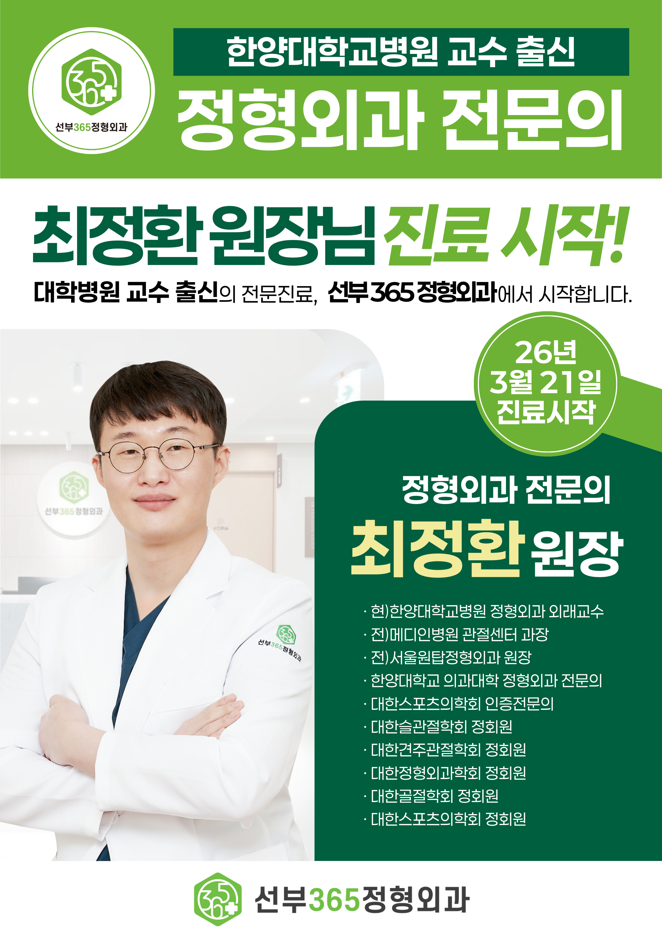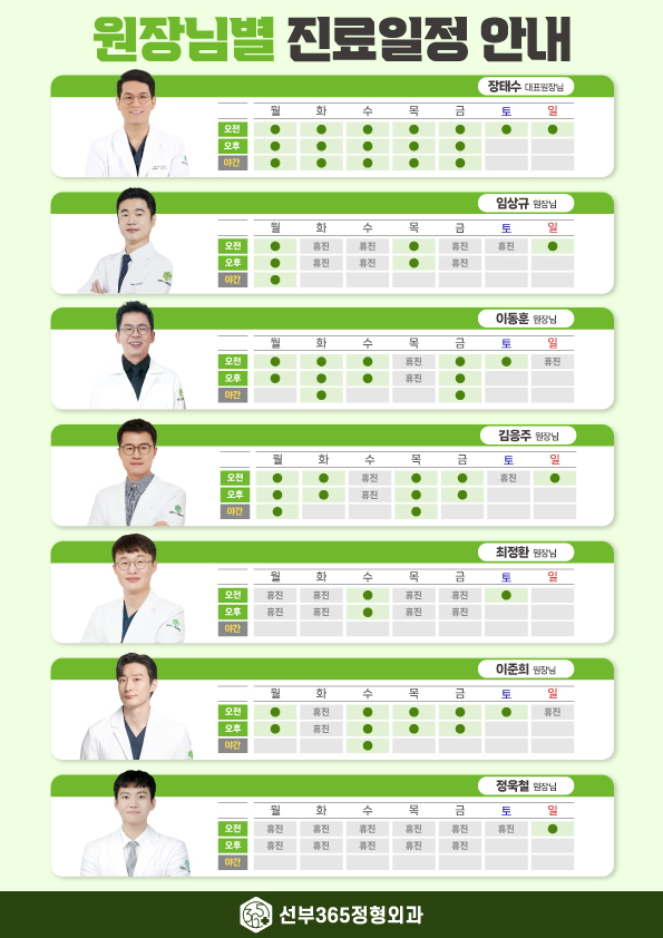 선부365정형외과에서는 척추/관절분야 의료진 7인 진료로 진료시간 단축 및 보다 나은 진료, 더욱 정확한 지료를 약속 드립니다.